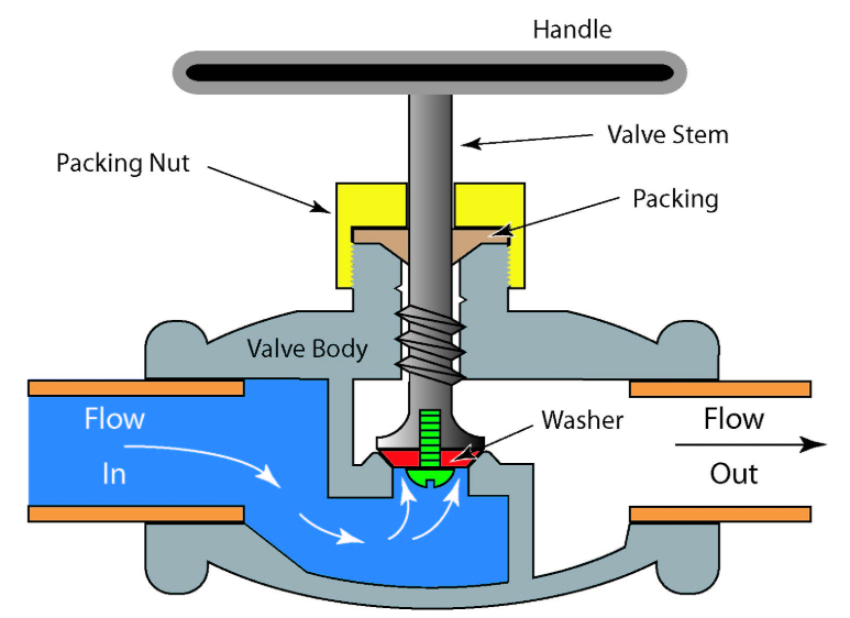 밸브 안에서 패킹이 위아래로 움직이며 유로를 조절하는 구조입니다.
