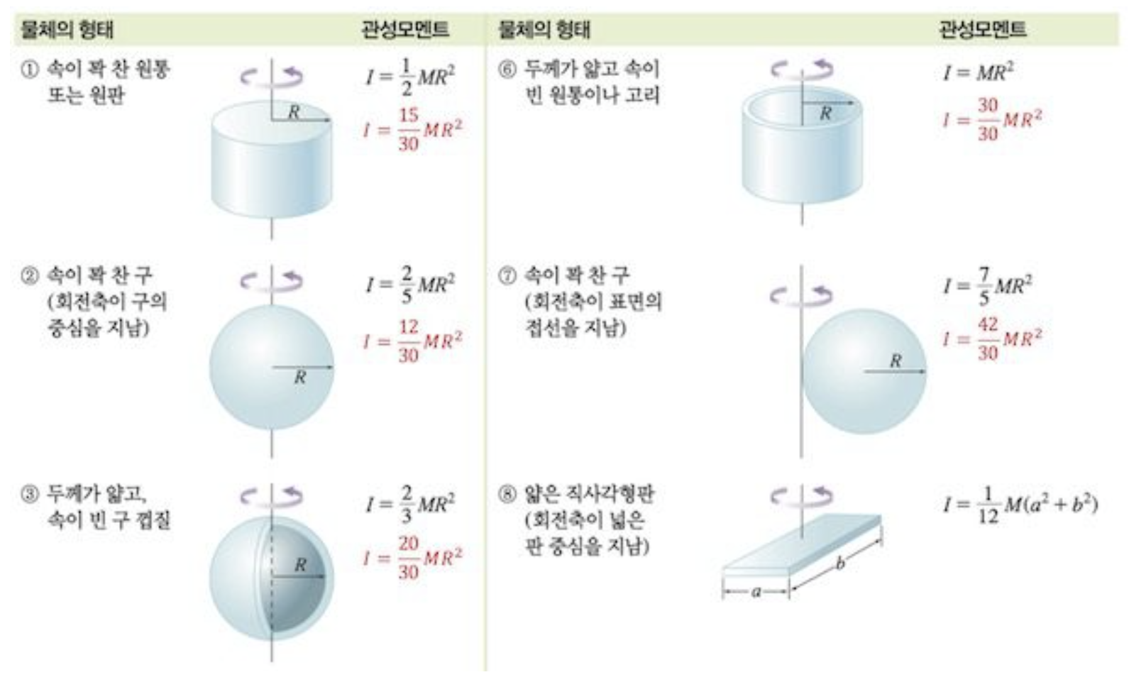 마지막으로, 관성모멘트를 빠르게 익히고 싶다면,
