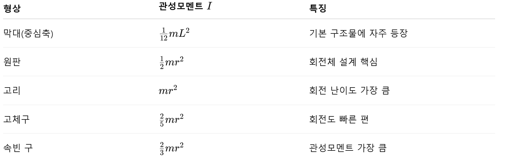 💡 대표적인 관성모멘트 공식들